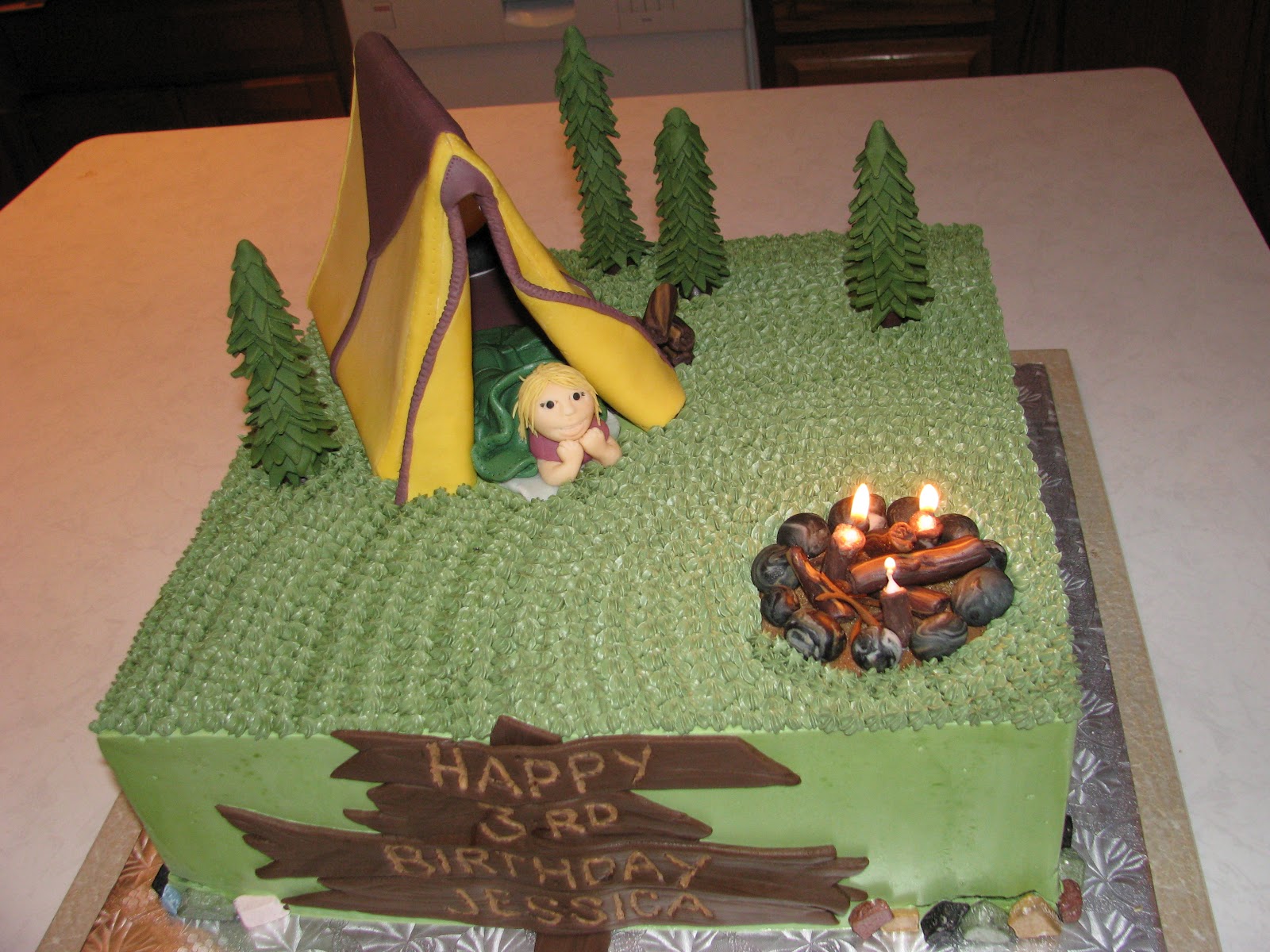 Camping birthday party cake. Camping birthday party ideas thanks for watching. I can bring some things from home but quite frankly much of the cooler space will be devoted to canned craft beer. Since i will be camping that weekend i know that a big fancy cake is out of the question but i would like to bring some sort of birthday treat. When attending a birthday party i would say that the birthday cake is what i look most forward too and its not just sinking my teeth into that yummy suga.