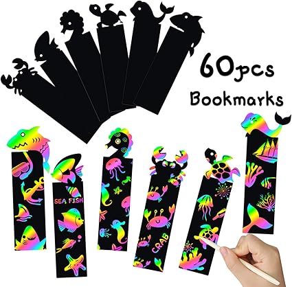 Amazon Com Mallmall6 60pcs Sea Animal Scratch Bookmarks Rainbow